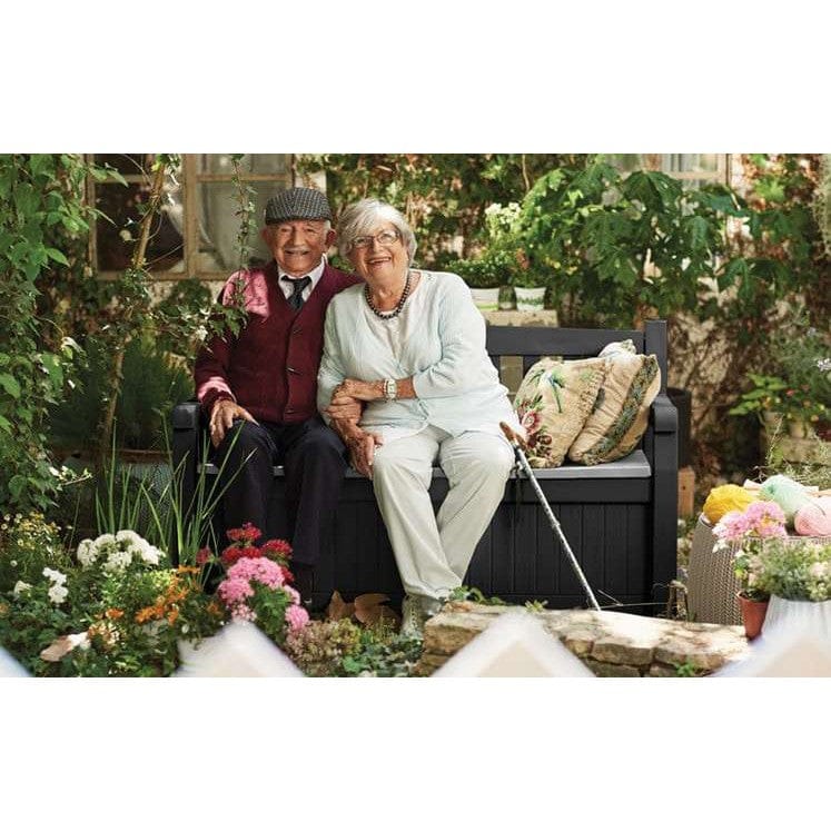 The Eden Garden Bench Storage Box combines stylish outdoor seating with practical storage. Fully weather-resistant and made from durable, fade-free resin, it comfortably seats two adults while discreetly storing 265L of garden essentials such as cushions, tools and outdoor accessories. The decorative wood-style finish enhances any patio setting, and its lockable design keeps contents safe, dry and well-ventilated.