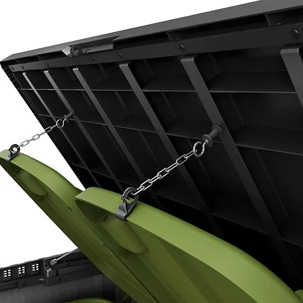 Large 1150L capacity – accommodates garden tools, BBQs, or up to 2 wheelie bins (240L each)